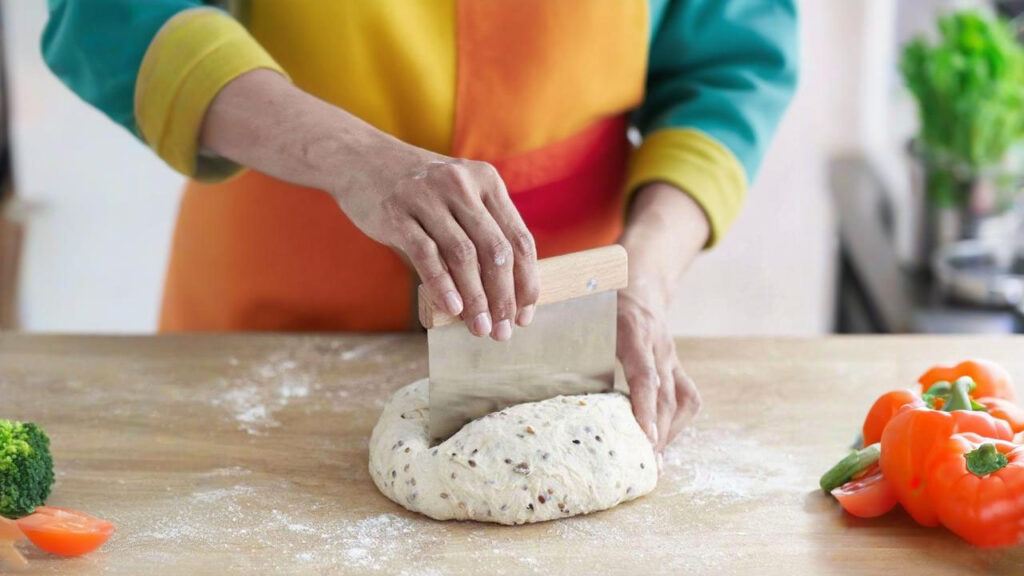 The handle is designed to be comfortable, which helps prevent repetitive strain injuries. This is very important for jobs where people use these tools hundreds of times a day. Curved edges that bend are good for working with delicate dough, while straight edges make clean cuts and make cleaning easier.