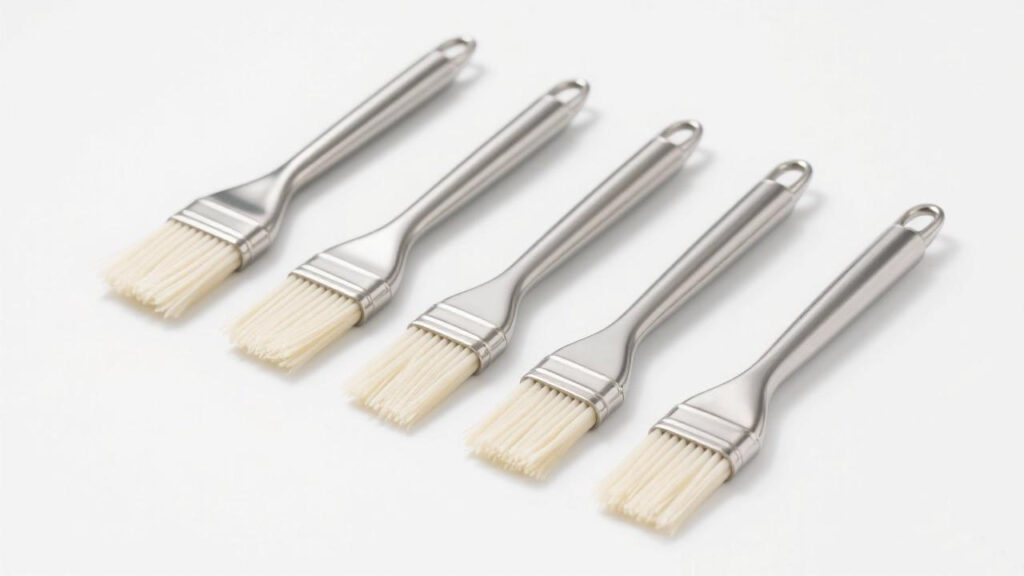 For egg washes, glazes, and butter applications, you need a precise brush with a stainless steel handle and natural bristles. The heat-resistant construction can handle being in direct touch with hot surfaces, and the secure bristle attachment keeps everything clean.