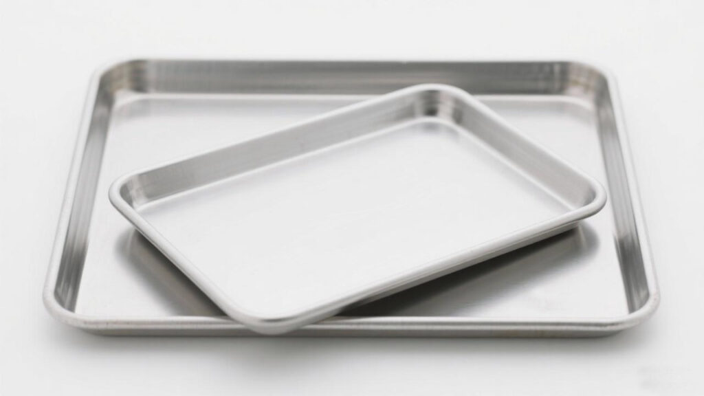 Standard sizes of half-sheet (18″x13″), full-sheet (26″x18″), and quarter-sheet (13″x9″) make sure they work with commercial ovens and storage systems. To keep manufacturing going, volume operations need more than 20 pans of each size.